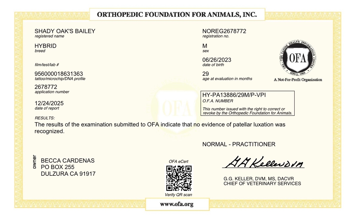 // Full genetic panel / OFA Patallas / OFA Cardiac //