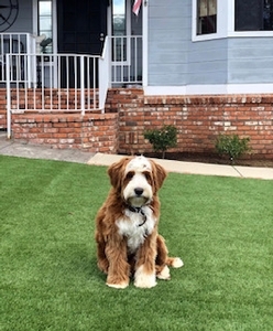 Jerry is what started it all for us when it comes to high quality mini Bernedoodles. he is by far the most famous mini Bernedoodle stud in the world producing amazing puppies all over the world. At this point Jerry is semi retired and his legacy lives on through his many daughters whom are active breeding dogs in our program. Without Jerry, our program wouldn't be where it is. He made a name for the red and white tuxedo Bernedoodles and we are forever grateful to him for that.