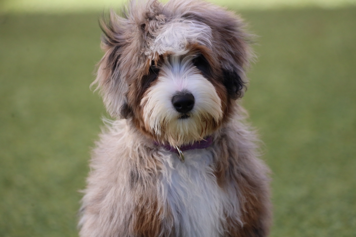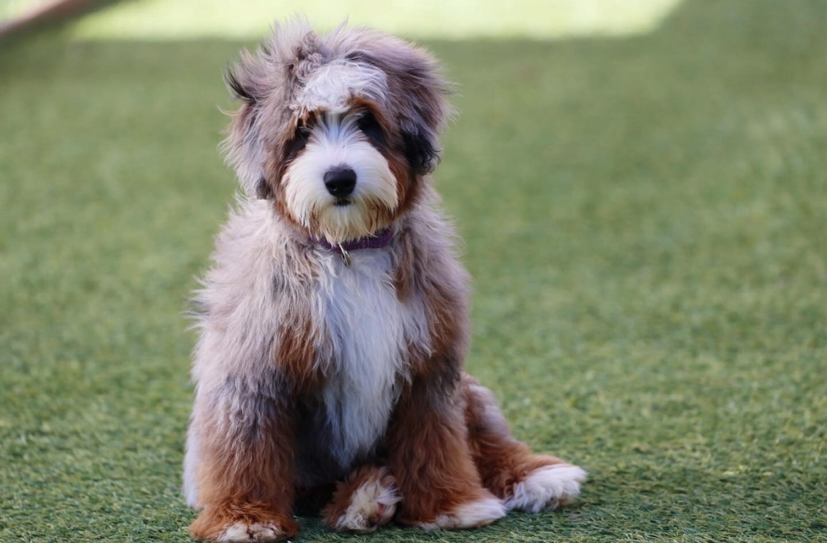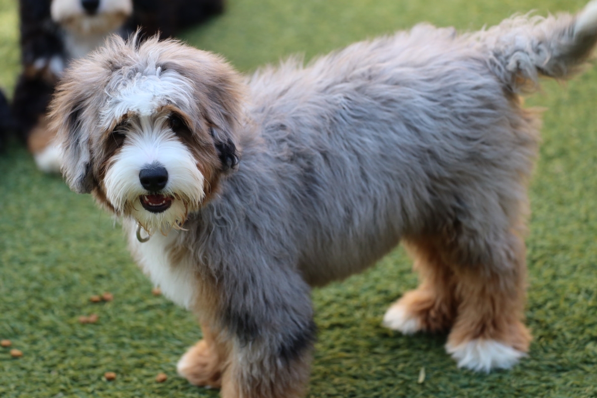 Meet Bailey, our gorgeous blue merle female Mini Bernedoodle. Born on June 12th, Bailey has a soft, loose, wavy coat that is completely non-shedding and hypoallergenic. Her stunning coloring and sweet expression make her a true standout, and with her expected smaller size, she’s the perfect mix of beauty, brains, and companionship.
