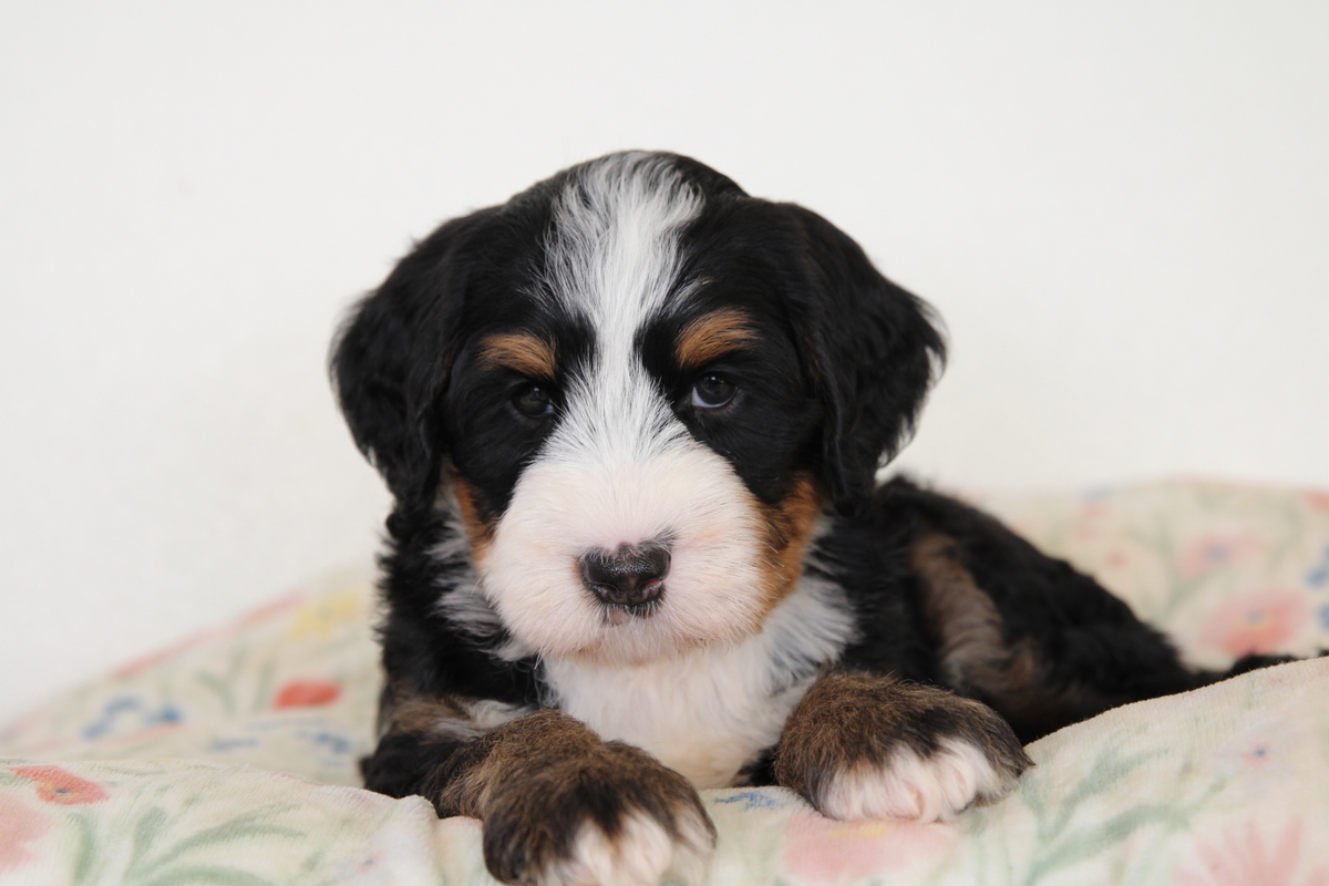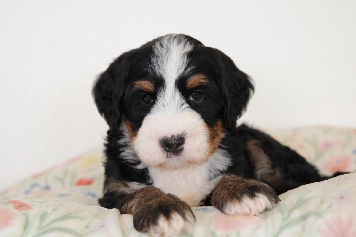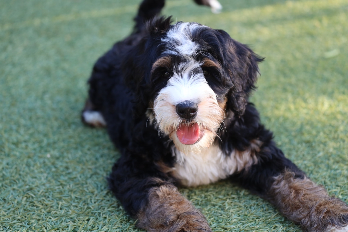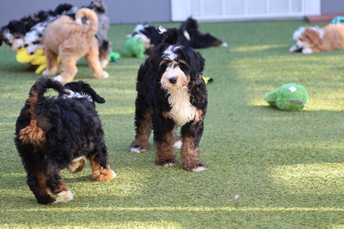 Champ’s coat is non-shedding and hypoallergenic, making him a wonderful choice for families who want all the beauty of a Bernedoodle without the hassle of shedding. His loose waves give him that signature doodle look while being easy to maintain. Beyond his stunning appearance, Champ has been raised with plenty of love and care, ensuring he has the foundation to grow into a confident and affectionate adult dog.